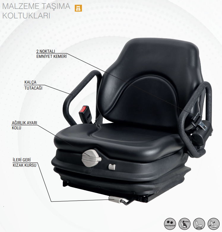 Mekanik sistem ürünler herhangi bir kompresöre, havaya destek duymadan yay, makas, ve amortisör bileşenleriyle yaylanmaktadır.
