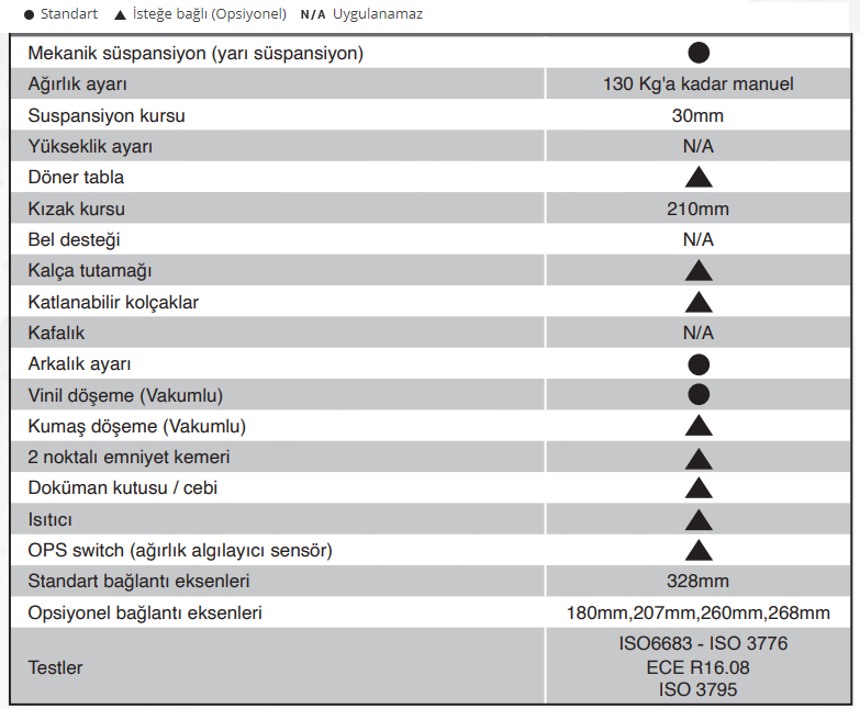Evet. Ürünlerimiz çoğunlukla tüm opsiyonlar koltuk üzerinde olacak şekilde katalog çekimi yapılmaktadır. Üründeki standart özellikleri ve ilave edilebilir opsiyonel özelliklerin bulunduğu tabloyu ürün görselleri arasında görebilirsiniz.