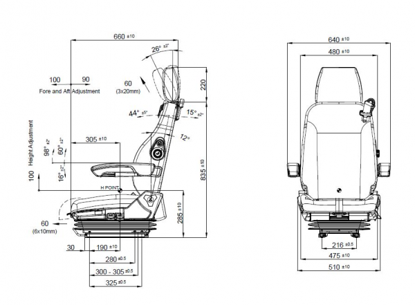 • Dik açılarda çalışırken daha iyi konfor için koltuk eğimi ayarı