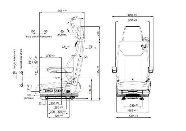 - Dik açılarda çalışırken daha fazla konfor için koltuk eğimi ayarı.