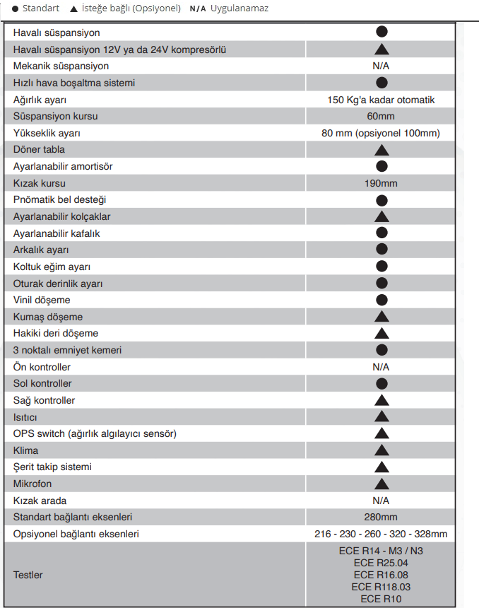 Evet. Ürünlerimiz çoğunlukla tüm opsiyonlar koltuk üzerinde olacak şekilde katalog çekimi yapılmaktadır. Üründeki standart özellikleri ve ilave edilebilir opsiyonel özelliklerin bulunduğu tabloyu ürün görselleri arasında görebilirsiniz.